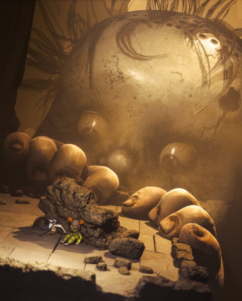 No obstante, aun con toda esta ambientación a cuestas, el título desarrollado por Supermassive no puede sortear uno de sus mayores inconvenientes: el de un mundo estático, lineal, con el que apenas se puede interactuar, exento de mecánicas novedosas, salvo la del paraguas y la interacción con el viento, que se utiliza en una sola sección de la aventura para luego descartarse completamente, o la del oso de peluche que, con la aureola de su luz, modifica el entorno, habilita una especie de tiempo pasado no tan remoto y permite el avance o la resolución de algún que otro puzzle, no demasiado complejo. De hecho, la gran mayoría de los puzzles en este juego son apenas una excusa, desligada de cualquier tipo de complejidad intrínseca o pensamiento lateral, para trasladarse sucintamente de un escenario a otro.