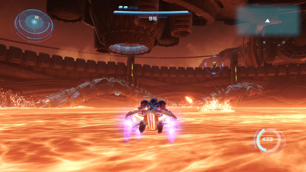 El titúlo se puede jugar con los mandos separados o no, con un botón apuntamos o fijamos el objetivo y con otros dos disparamos el Psycho Rayo, con otro botón los tiros de elemento y los misiles, apuntar en ambos modos es súper sencillo solo apretamos ZR y Samus apuntará automáticamente, el gameplay se desarrolla como en todos los Metroid Prime primera persona, a excepción cuando estemos en la moto o en la morfo esfera que se verá en tercera.