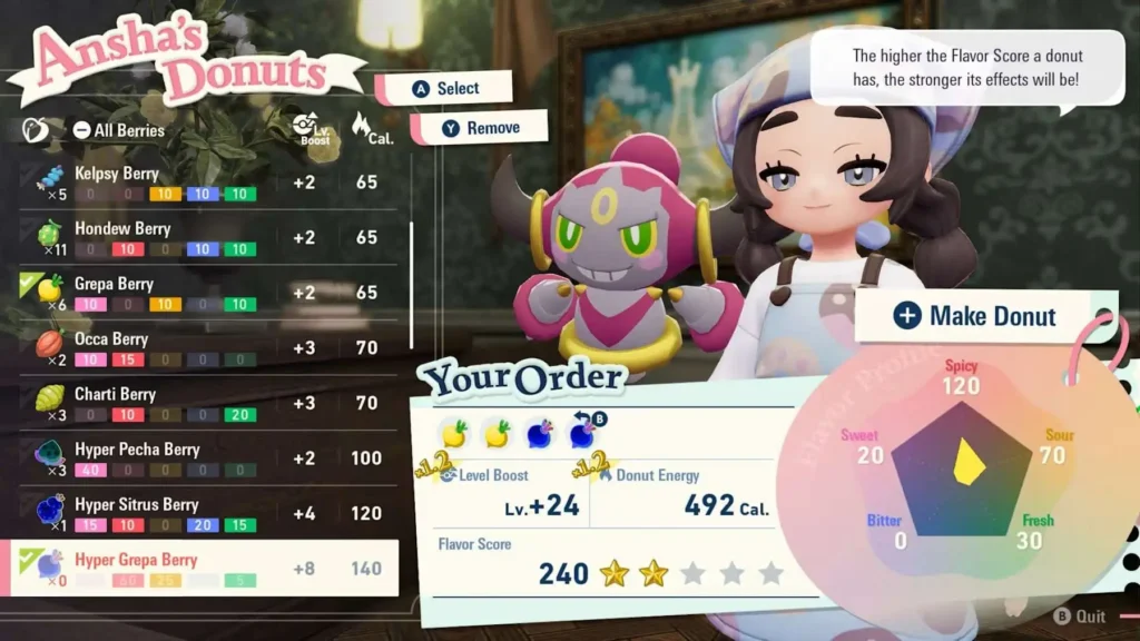 En el tendremos que entrar a portales que investigan la organización Quartazar y Corax junto al equipo Corrosion, una vez que nos asignen la misión de investigar los portales, deberemos acudir a la tienda de Anya de donas en el hotel, conseguir mantequilla y con distintas bayas o frutas que consigamos durante el juego principal preparar donas con diferentes aportes energéticos, cada baya le asigna un número de calorías a las donas, al principio solo podremos preparar donas de tres vallas, luego con mejores mantequillas, podremos fabricar donas de más vallas, esto es importantísimo por que según el aporte calórico de la dona es el tiempo que podremos estar en el agujero dimensional, ya que Hoopa deberá comer donas para abrir la puerta a otra dimensión , ejemplo si la dona tiene 560 calorías podremos estar en la dimensión cinco minutos con sesenta segundos y así sucesivamente, a medida que las donas son mejores estas adquieren mejores estrellas.